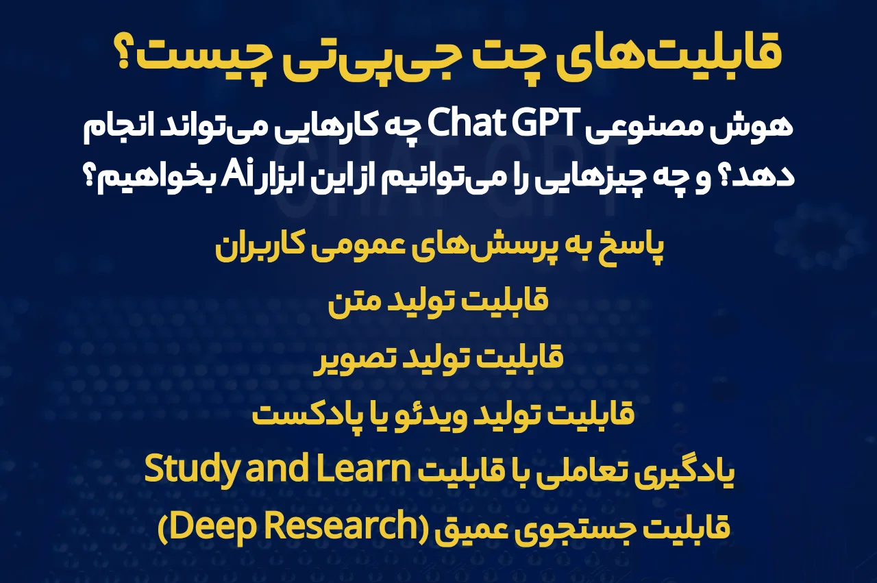 هوش مصنوعی Chat GPT چه کارهایی میتواند انجام دهد؟ و چه چیزهایی را میتوانیم از این ابزار Ai بخواهیم؟ برای پاسخگویی به این سبک از سوالات باید به مرور قابلیتهای چت جیپیتی بپردازیم. در این مرور ملاک ما آخرین آپدیت این ابزار است که در اوایل سپتامبر ۲۰۲۵ منتشر شد.